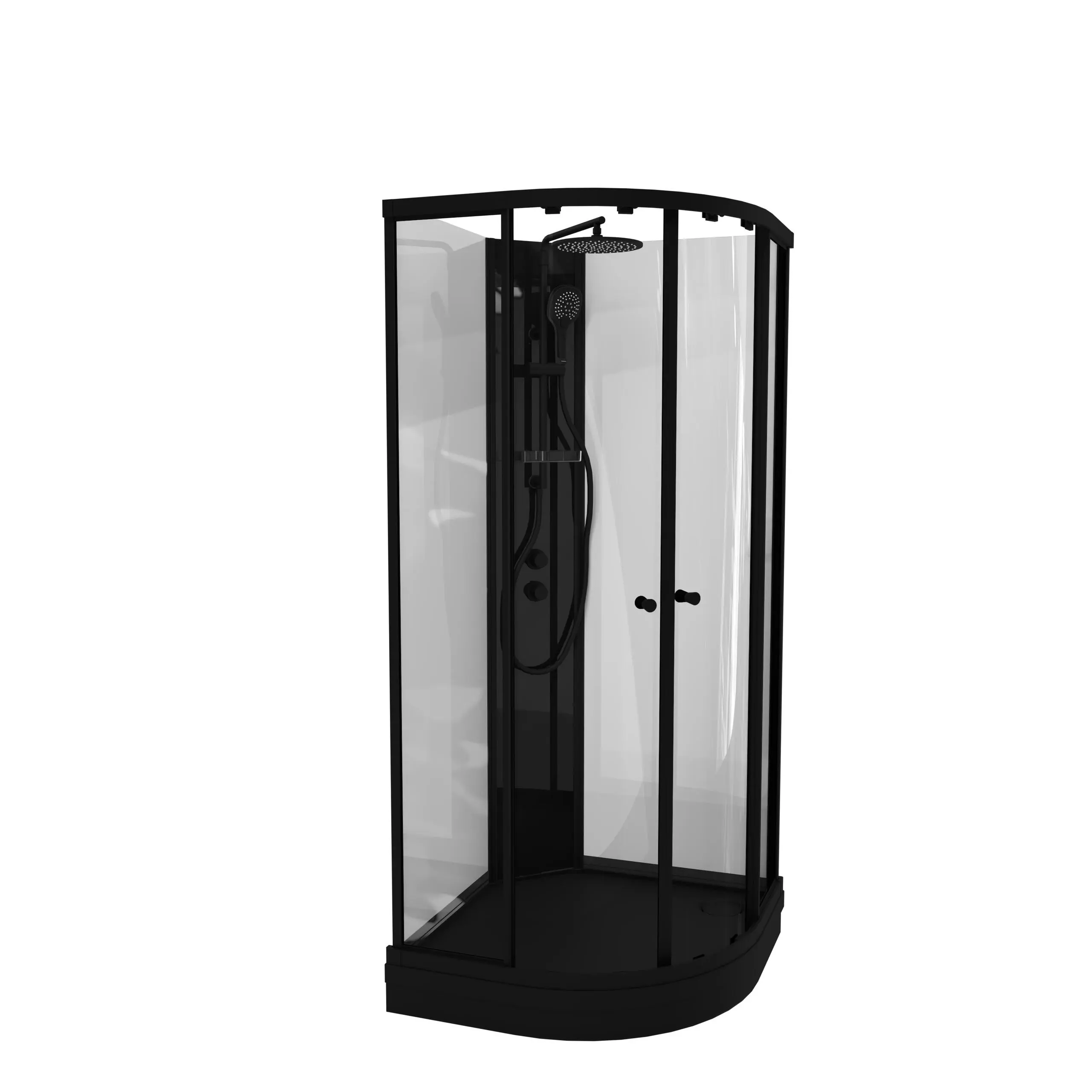 SOFIA Pluss er et dusjkabinett fra VikingBad med sorte profiler, sort søyle og hvite bakglass.